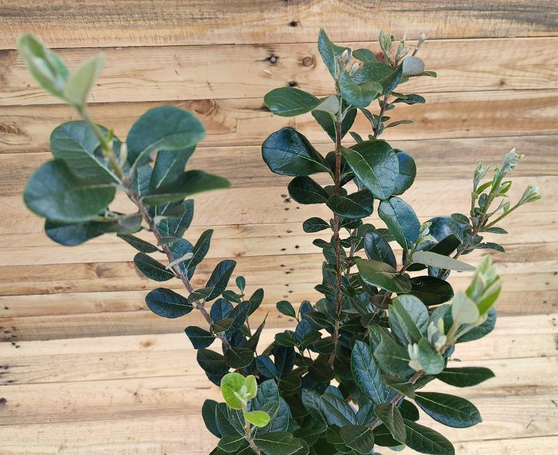 Feijoa is an evergreen shrub or small tree that can reach a height of up to 4 meters. It blooms in May and June with decorative red flowers. The fragrant green oval fruits ripen in October and are approximately 7 centimeters long. It is an edible flower and fruit, with a special taste and aroma of exotic fruit. This plant grows best in sunny and warm locations, sheltered from cold winds. Very resistant to plant diseases and pests.