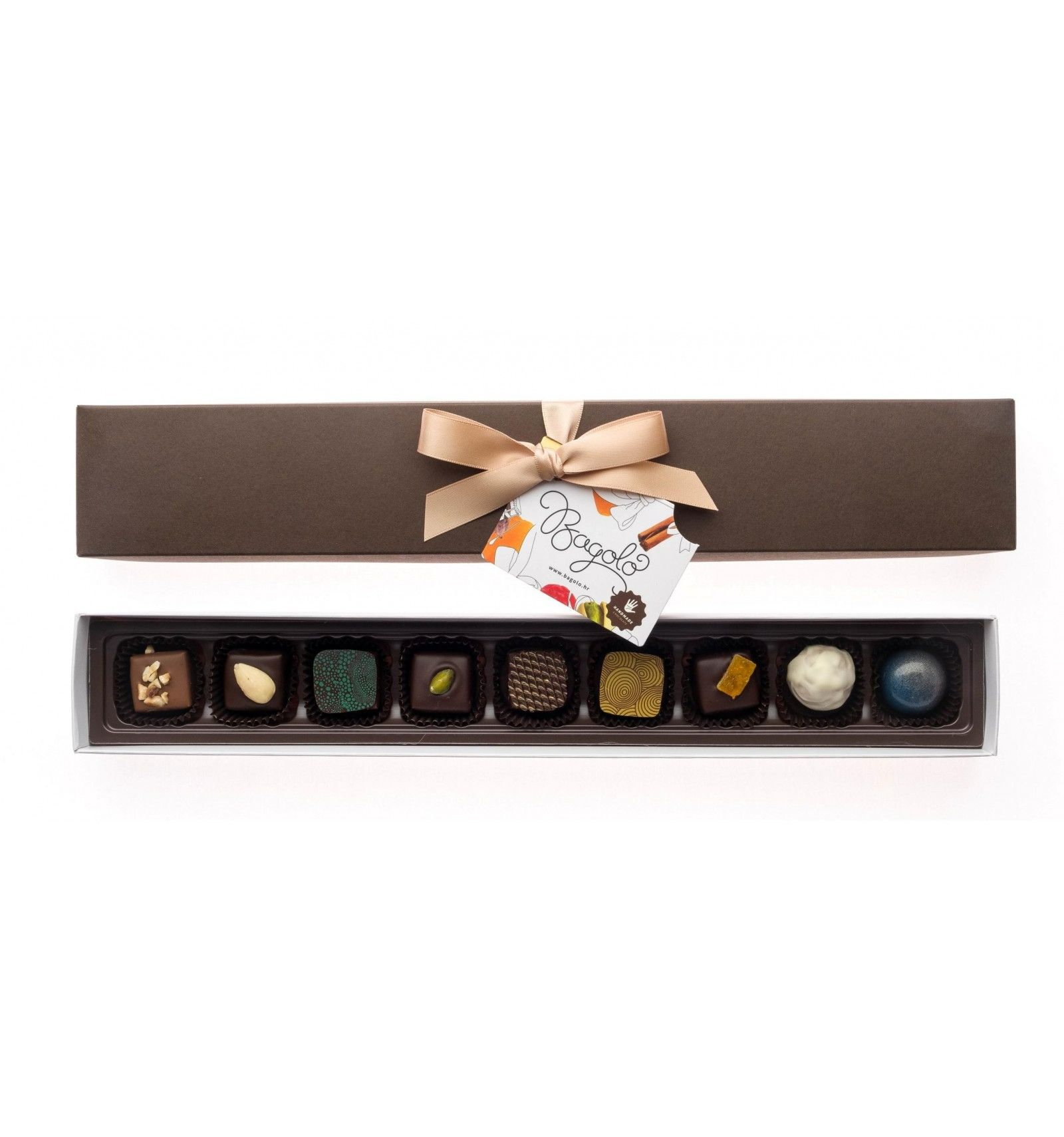 The elegant box contains nine different handmade pralines.