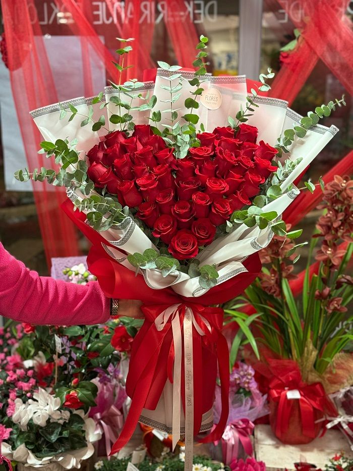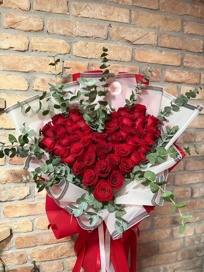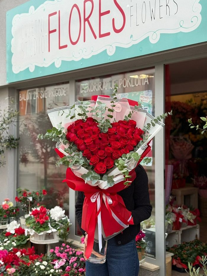 Buket srce u XL veličini sadrži 40 ruža u odabranoj boji (crvena, roza, bijela ili mix).