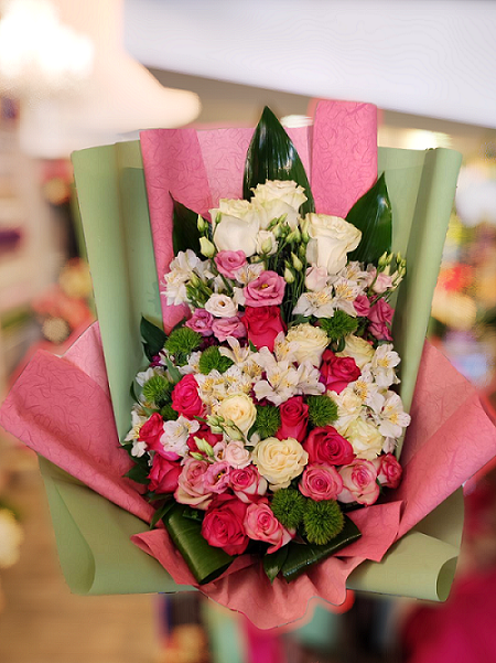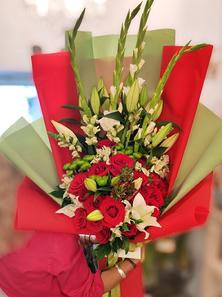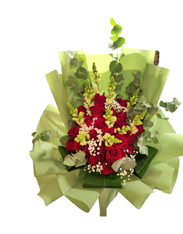 Buket u XL veličini sadrži miješano cvijeće u odabranoj boji (crvena, roza, bijela, narančasta ili mix).