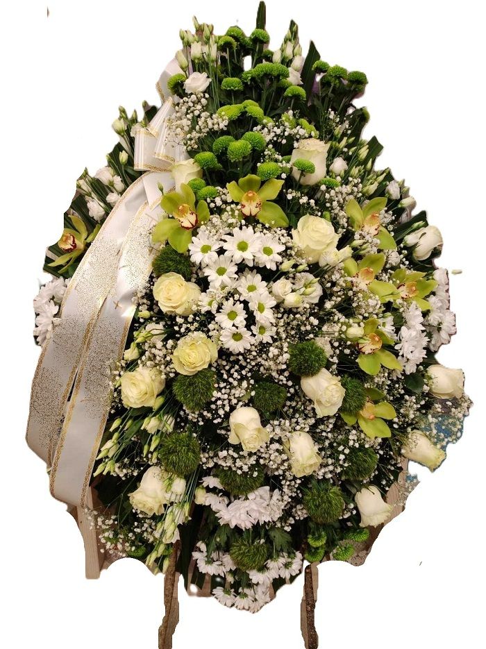 Aranžman se sastoji od zelenila i miješanog cvijeća u odabranoj boji (roza, bijela, crvena).